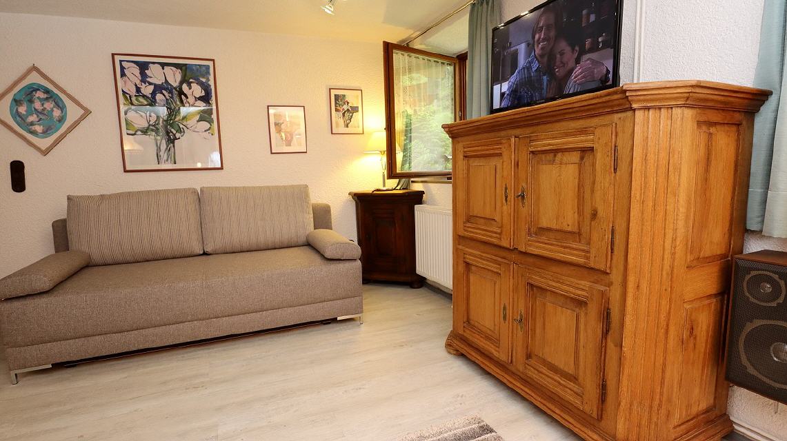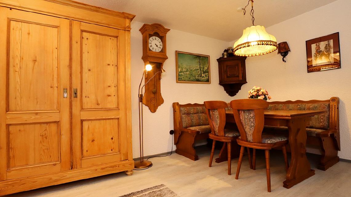Zur Verfügung steht Ihnen ein Schlafzimmer, ein großer, schöner Wohnraum, eine geräumige Diele, eine komplett eingerichtete Küche, ein separates WC sowie Badezimmer mit Dusche und Waschmaschine. Der Wohnraum hat eine Essecke, eine ausziehbare Schlafcouch und einen gemütlichen Kachelofen. Im Schlafzimmer besteht zusätzlich die Möglichkeit, ein fünftes Bett zuzustellen.